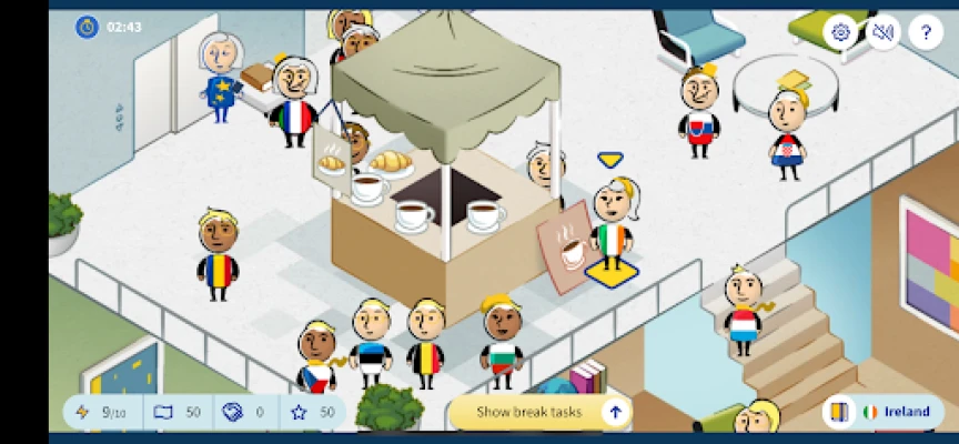 Win or lose action points by interacting with the other member states, but choose your actions wisely, as your negotiation powers are limited. You can replenish your points through trivia quizzes and mini-games during breaks between the negotiation rounds.
