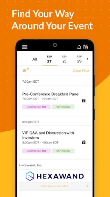 The EventMobi app allows you to instantly access information about the event you’re attending and participate in related event activities.